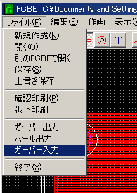PCBEの「ファイル」にある「ガーバー入力」という機能で取り込む。