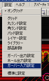 ただ、このガーバー入力の機能はちょっとクセがあり、読み込ませるガーバーファイル名を「設定」の「ガーバー入力設定」で設定し、