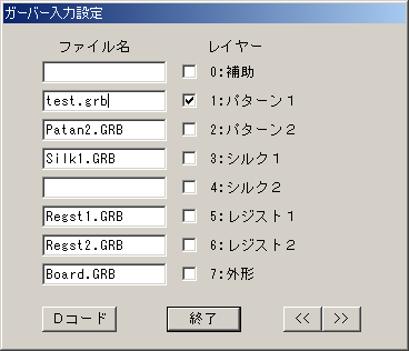 ←この例だと、ガーバデータをパターン1のレイヤーに忍び込ませる例です。test.grbファイルがソレ。